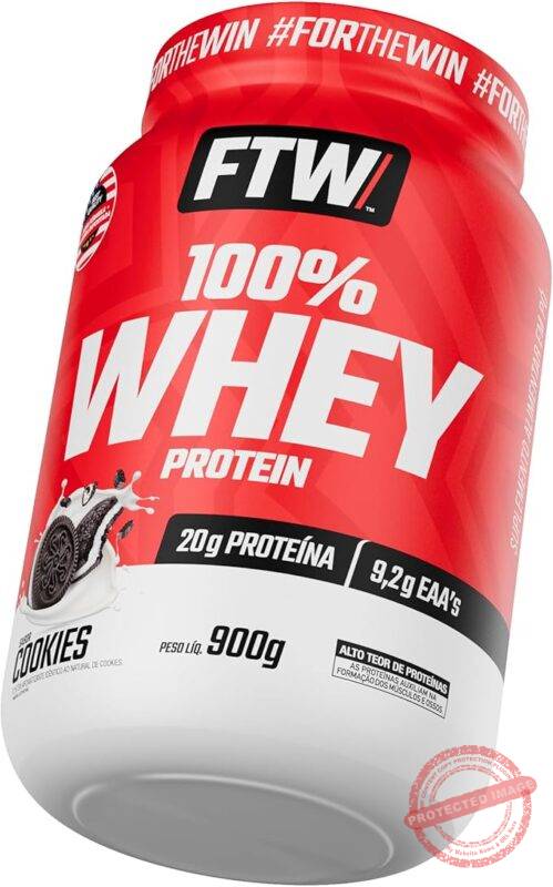 FTW 100% Whey Protein com Proteína Concentrada WPC, Suplemento Alimentar Pós-Treino em Pó com Fonte de Proteína do Soro do Leite, Alto Valor Biológico, Sem Glúten – Pote 900g (Sabor Cookies)