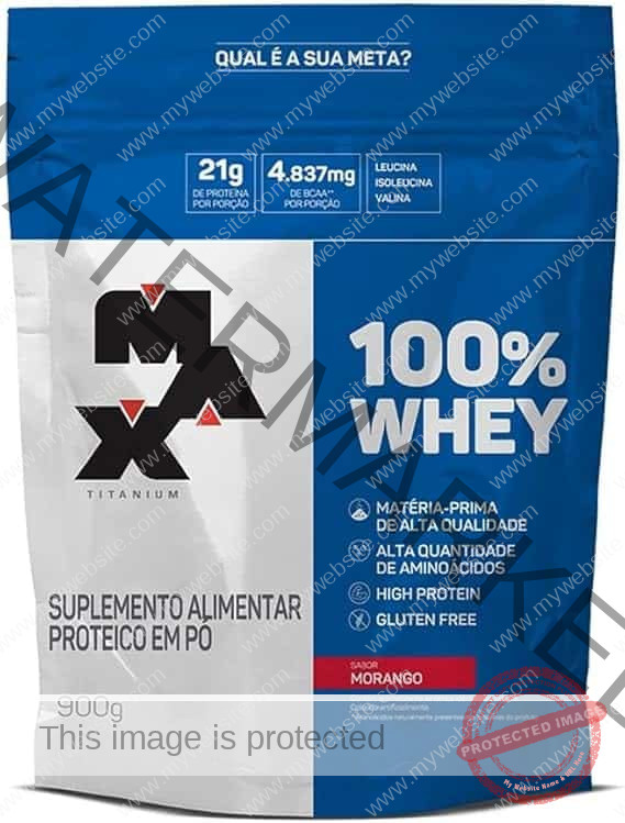 100% Whey – 900G Refil Morango – Max Titanium, Max Titanium