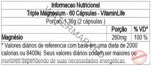 Em até 2x de R$ 25,88 sem juros Vitaminlife Triple Magnesium 260Mg (Malato + Taurato + Bisglicinato) 60 Cáps