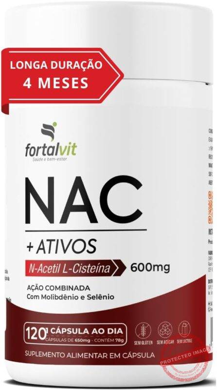 Em até 3x de R$ 34,75 sem juros NAC 600mg com Molibdênio e Selênio, Longa Duração: 4 Meses de Uso, 120 cápsulas, Fortalvit