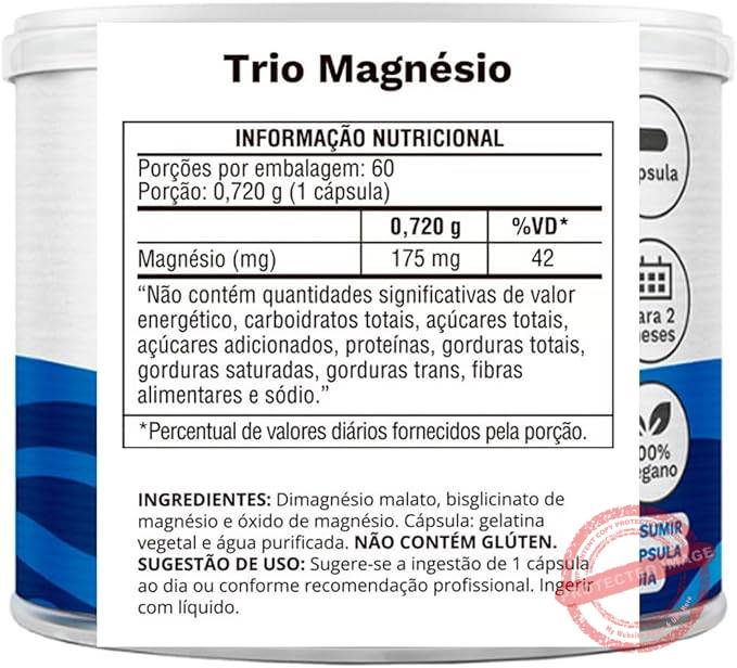 Em até 2x de R$ 23,25 sem juros Trio Magnésio 60 cápsulas 720 mg Ocean Drop