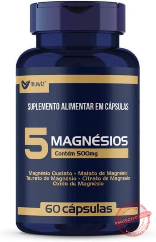 Em até 1x de R$ 29,25 sem juros 5 Magnesios Quelato Malato Taurato – 60 Capsulas Muwiz