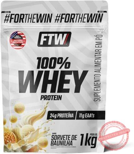 FTW 100% Whey Protein com Proteína Concentrada WPC, para Atletas com Alto Valor Biológico, Suplemento Pós-Treino Sem Glúten – Refil 1kg (Baunilha)