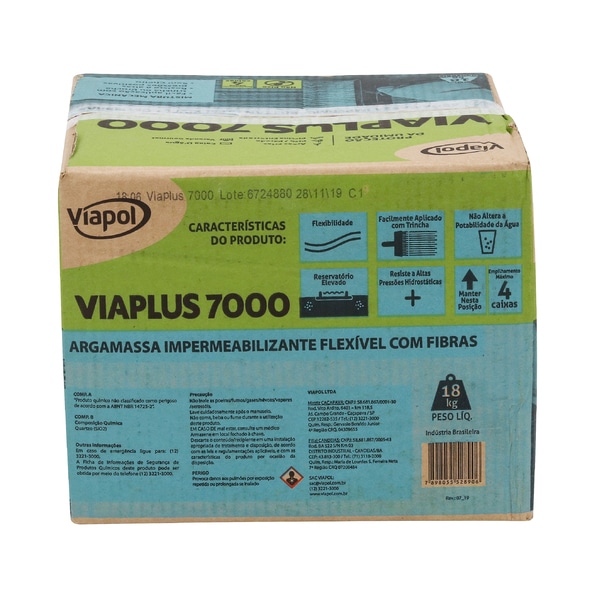 Características da Argamassa Polimérica Viaplus 7000 Fibras 18 kg Viapol