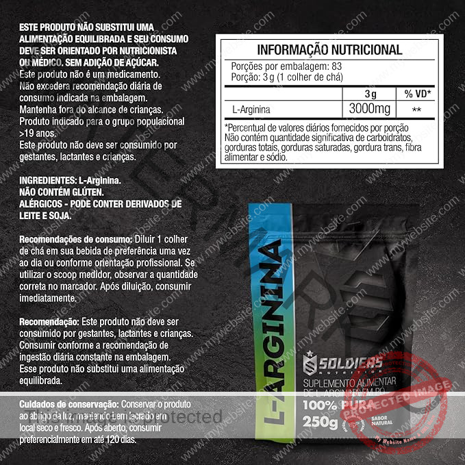 Arginina 250g – 100% Puro Importado – Soldiers Nutrition