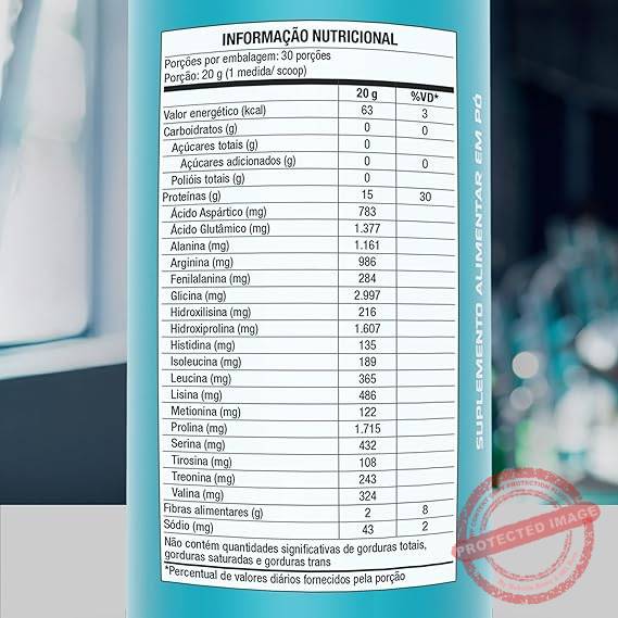 SUGESTÃO DE USO: Consumir 1 (um) ou 2 (dois) copo-medida (scoop) ao dia, antes e/ou depois do treino ou conforme orientação do médico e/ou nutricionista. Adicionar o conteúdo de 1 (um) copo-medida (scoop) para cada 200 ml de água ou bebida de sua preferência, agitando até dissolver. Ou consuma conforme orientação profissional. INGREDIENTES: Neutro: Colágeno Hidrolisado. NÃO CONTÉM GLÚTEN. SEM ADIÇÃO DE AÇÚCARES. Cacau: Colágeno hidrolisado, cacau em pó, (edulcorantes naturais) taumatina e glicosídeos de esteviol, (espessante) goma xantana e (antiumectante) dióxido de silício e (aromatizantes) aroma idêntico ao natural de creme e aroma idêntico do natural de cacauçlç. NÃO CONTÉM GLUTEN. SEM ADIÇÃO DE AÇÚCARES. Frutas Vermelhas: Colágeno hidrolisado, morango, amora e framboesa em pó, (aromatizantes) aromas naturais de baunilha e morango (espessante) goma xantana, (acidulante) ácido cítrico, (antiumectante) dióxido de silício e (edulcorantes naturais) taumatina e glicosídeos de esteviol. NÃO CONTÉM GLUTEN. SEM ADIÇÃO DE AÇÚCARES. Baunilha: Colágeno hidrolisado, triglicerídeos de cadeia média em pó, (aromatizantes) aromas naturais de baunilha, (antiumectante) dióxido de silício, (espessante) goma xantana e (edulcorantes naturais) taumatina e glicosídeos de esteviol. NÃO CONTÉM GLUTEN. SEM ADIÇÃO DE AÇÚCARES. Coco: Colágeno hidrolisado, coco em pó, triglicerídeos de cadeia média em pó, (espessantes) goma arábica, goma xantana, (antiumectante) dióxido de silício, (aromatizantes) mix de aromas natural e idênticos ao natural e (edulcorantes naturais) taumatina e glicosídeos de esteviol de Stevia rebaudiana Bertoni. NÃO CONTÉM GLÚTEN. Cookies: Colágeno hidrolisado, nibs de cacau”, triglicerídeos de cadeia média, (aromatizantes) mix de aroma natural e idênticos ao natural, (antiumectante) dióxido de silício, (emulsificantes) goma xantana e goma arábica, (edulcorantes naturais) glicosídeos de esteviol de Stevia rebaudiana Bertoni e taumatina. (*) fornece quantidades não significativas de açúcares. ALÉRGICOS: PODE CONTER LEITE. NÃO CONTÉM GLÚTEN.