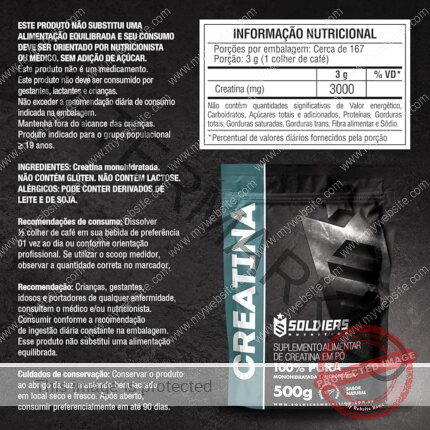| Aditivos | Creatina monohidratada. NÃO CONTÉM GLÚTEN |