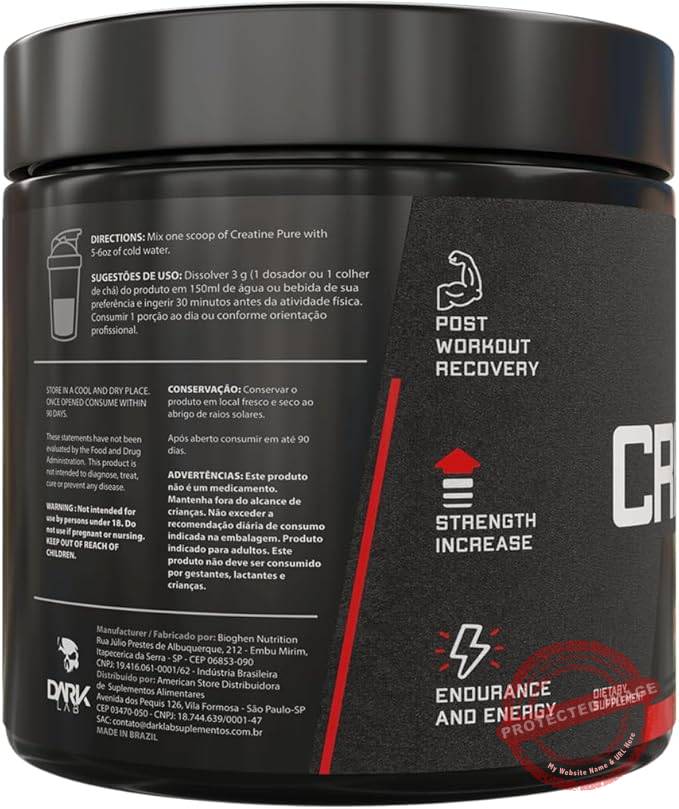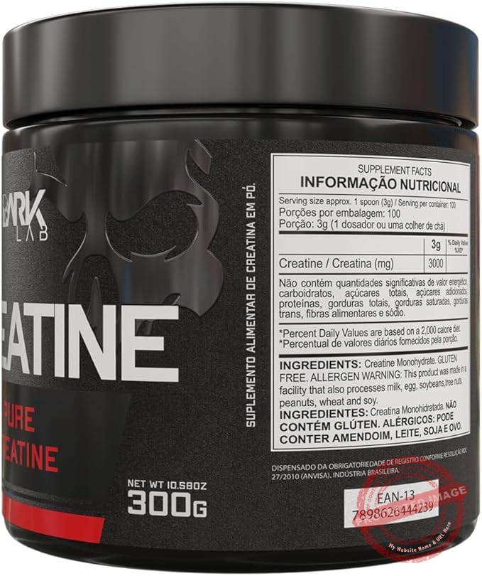 Creatina Pura Dark Lab 300g, Monohidratada 100% de Pureza, Sem Glúten, Sem Sabor